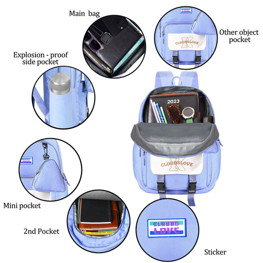 Clouds Love Stylish & Trendy Water Resistant High Storage School Collage Travel Backpack(Blue) Bag for Boys & Girls
